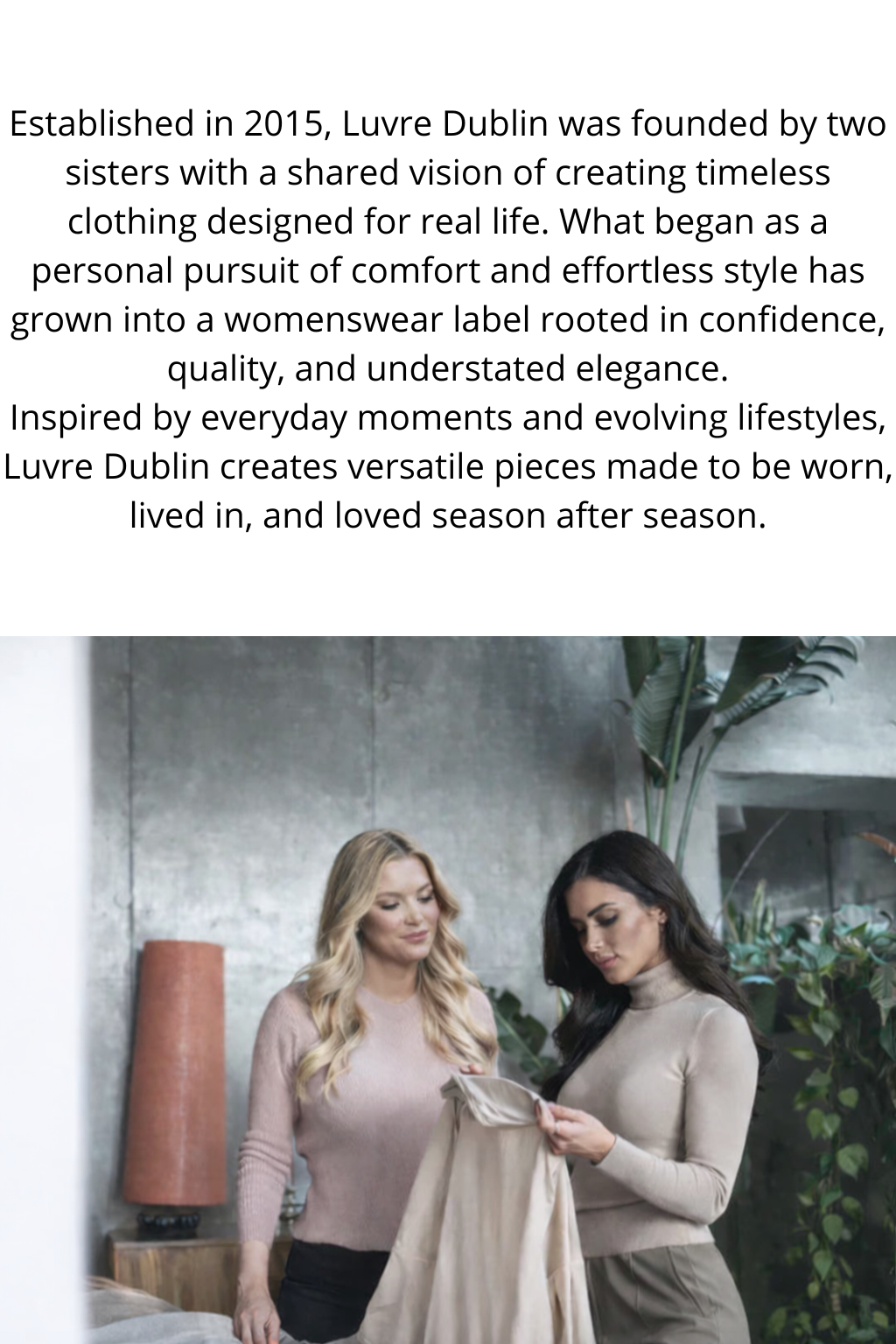 Founded in 2015, Luvre Dublin began with two sisters who shared a desire to create clothing that feels effortless, comfortable, and timeless. What started as a mutual appreciation for well-designed everyday pieces quickly grew into a brand rooted in confidence, quality, and understated elegance.